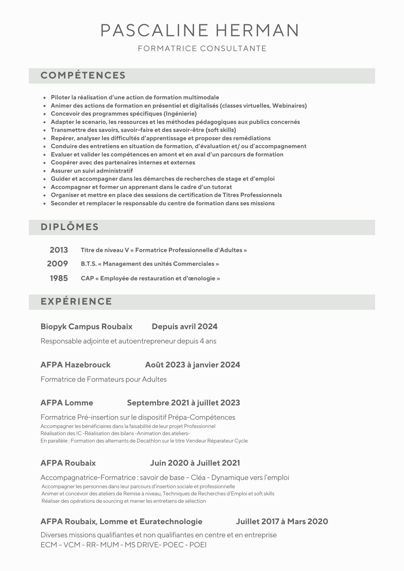 Télécharger le PDFExperte en ingénierie pédagogique et en animation de formations multimodales, Pascaline accompagne différents publics avec rigueur et sens de l’adaptation. Son expérience à l’AFPA et dans l’accompagnement professionnel fait d’elle une partenaire fiable pour tout projet de formation.